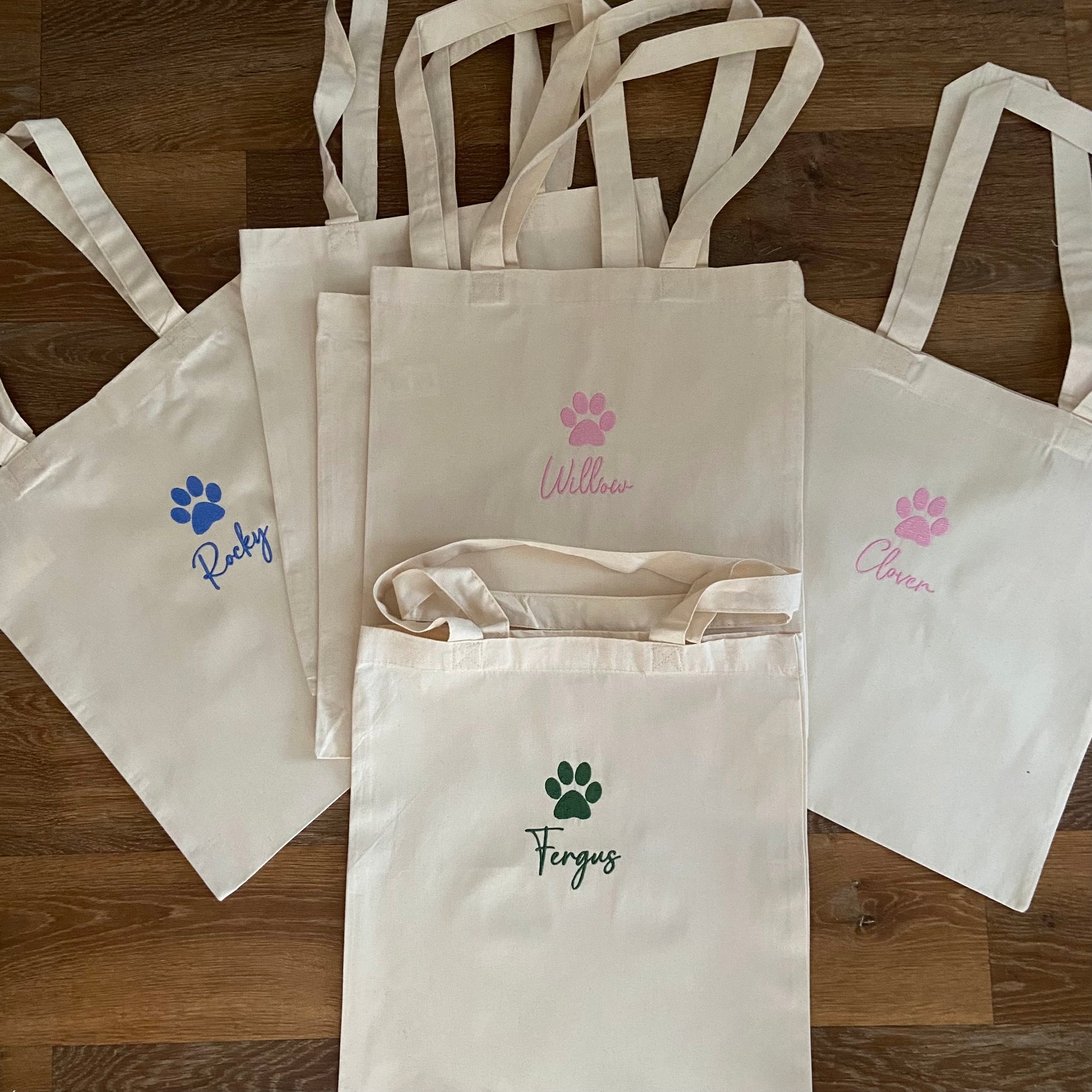 Personalised Dogs Name Embroidered Organic Tote Bag. Dog Gift. Puppy Gift idea. Dog Lover